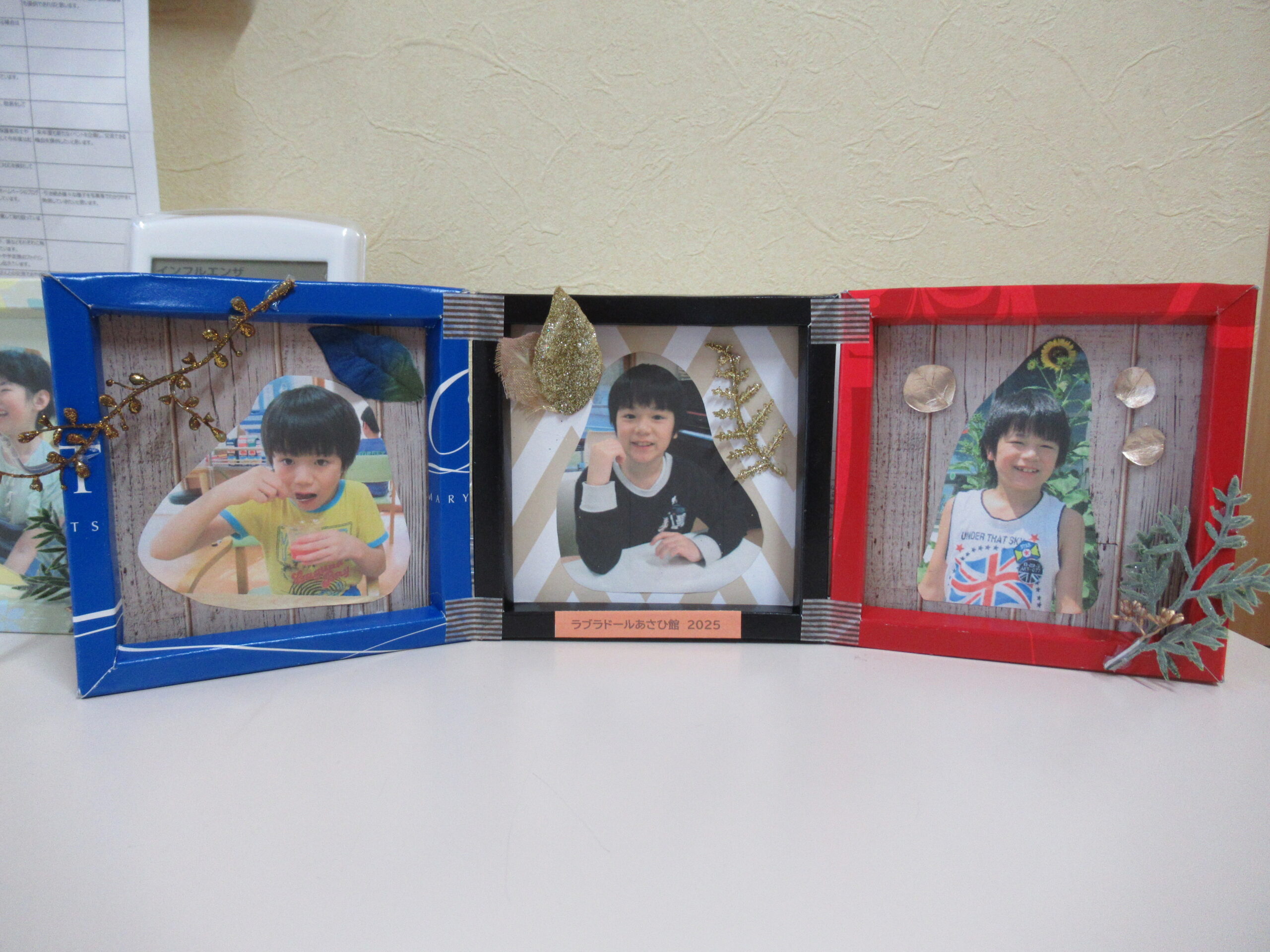 空き箱ををリサイクルした手作り写真立てです✨
